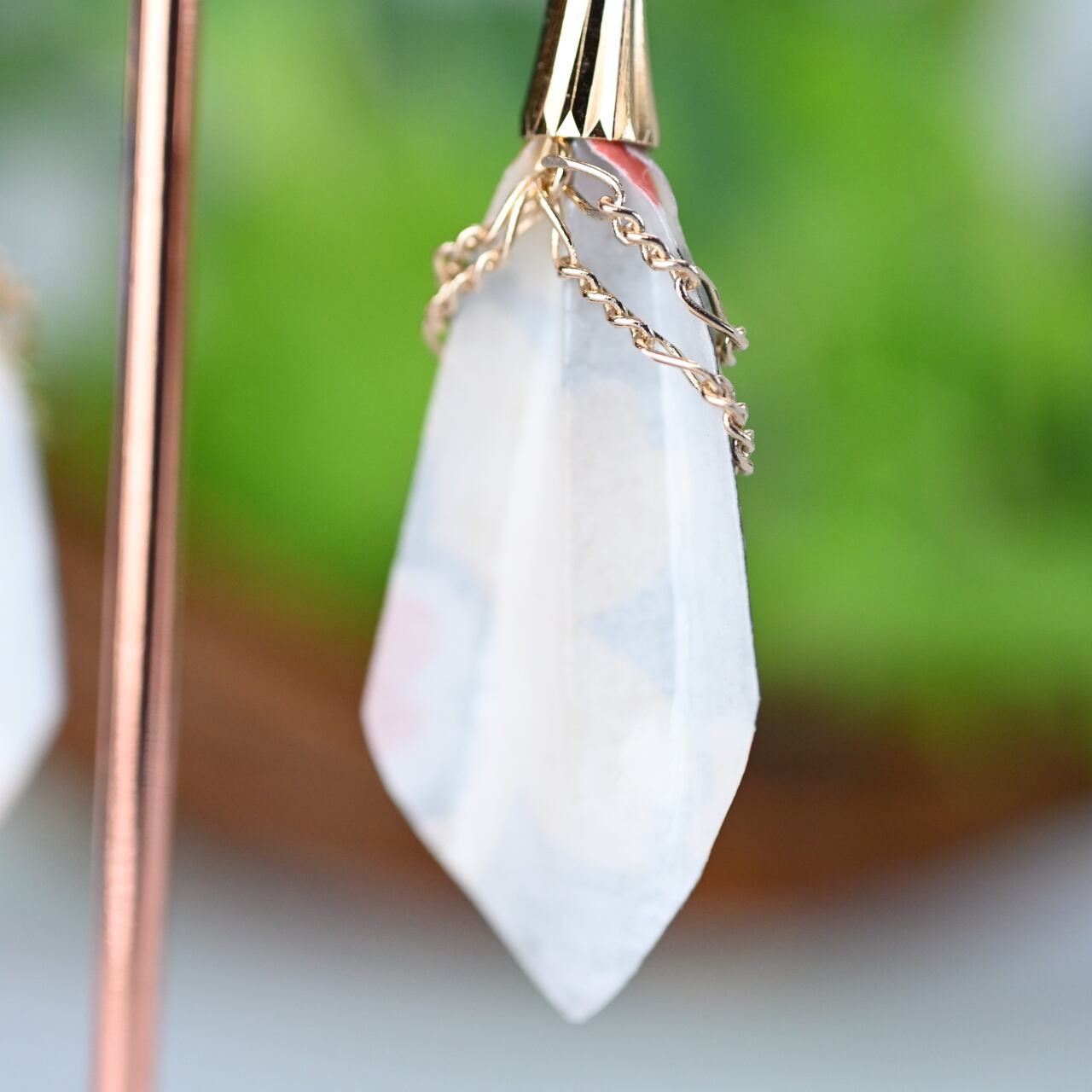 耳元で揺れるモチーフはは本物の木の葉を思わせる軽さですので、長時間の着用でも耳に負担をかけることがありません。