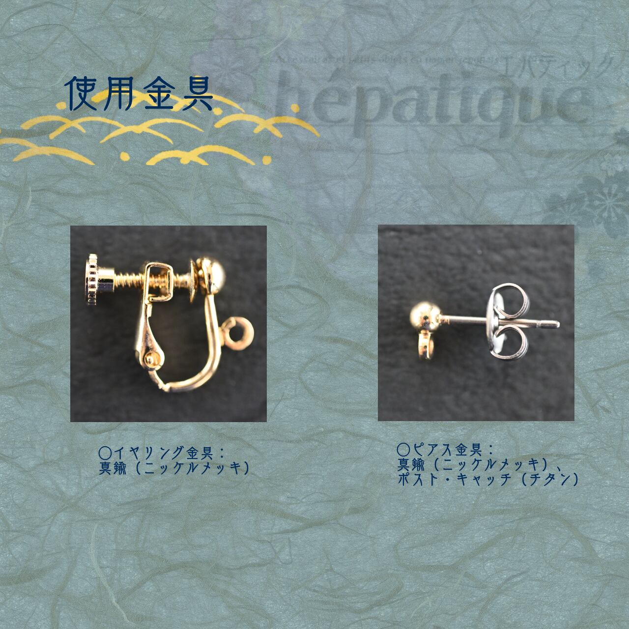 ◯ピアス金具:真鍮(ニッケルメッキ)、ポスト・キャッチ(チタン)