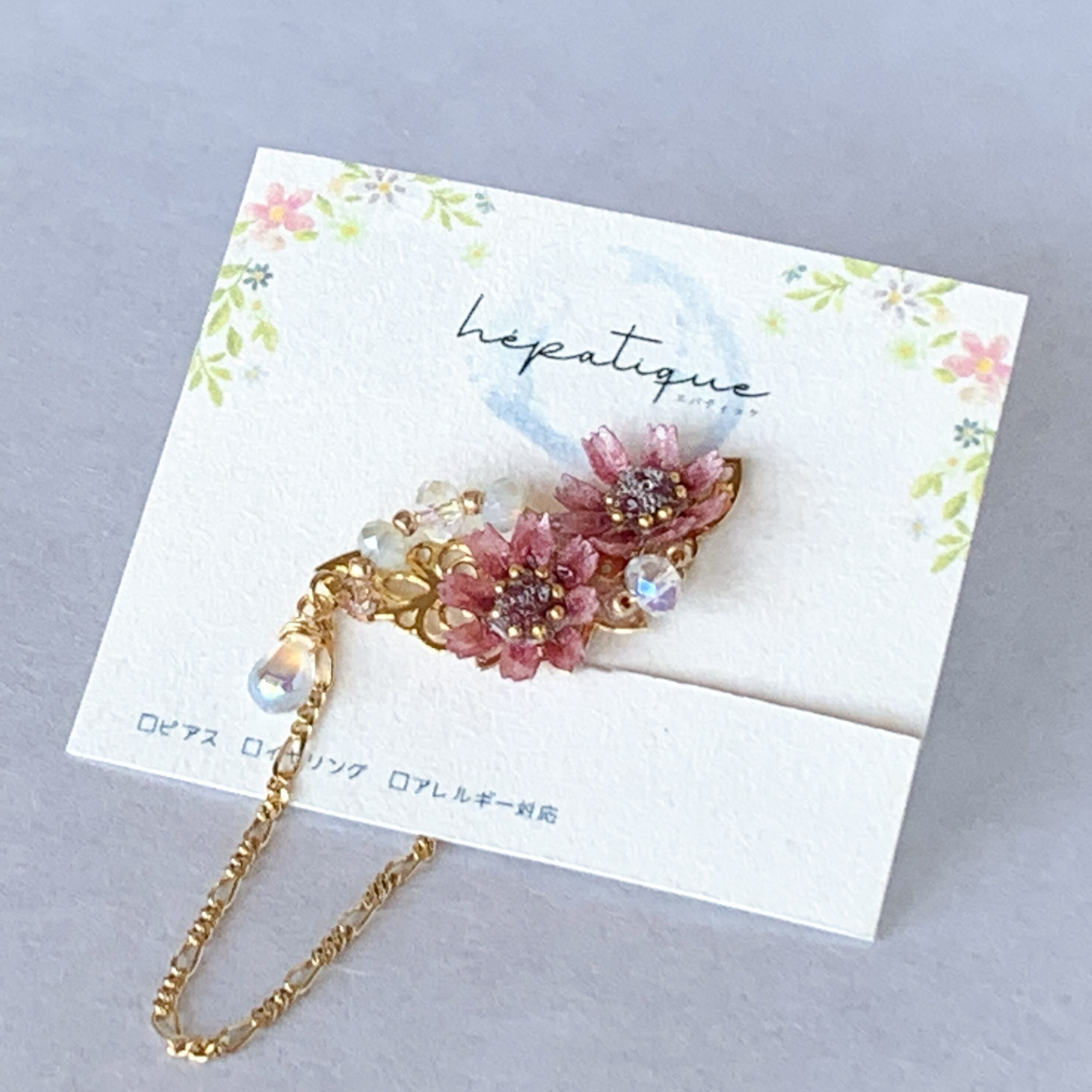 2輪の秋桜の周りに散りばめたビーズが秋の陽のように穏やかに輝き、艶やに大人の可愛さを彩ってくれます。